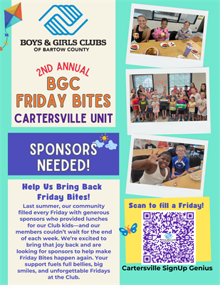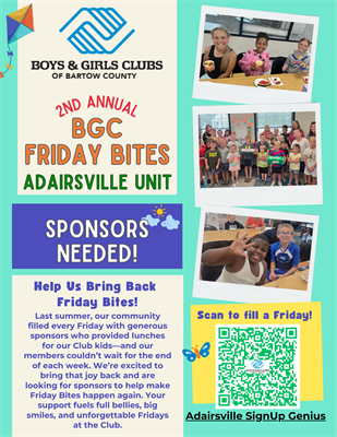 We have sponsorship opportunities at both of our locations: Cartersville Unit, 642 Henderson DR, Cartersville, GA 30120, and the Adairsville Unit, 104 North Main ST, Adairsville, GA 30103.